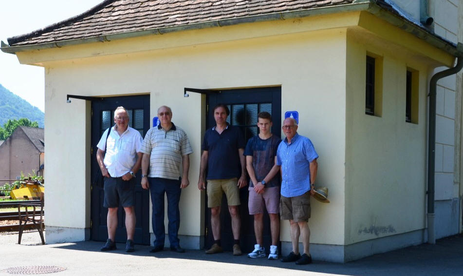 Nach einem Telefonat mit Herrn Dipl. Ing. Andreas Prinz und Herrn Dipl. Ing. Berndt Aschenbrenner fand am Freitag den 3. Juli 2015 ein erstes Treffen im Bahnhof Spitz an der Donau statt. Die Schüler Leon Bachner und Manuel Stromer haben für Ihre Abschlussarbeit das Bahnhofsgebäude und den Wasserturm von Spitz an der Donau gewählt. Der Hausherr der NÖVOG Dienststellenleiter Herr Gerhard Soukup hat uns herzlich begrüßt und anschließend wurden gemeinsam die Gebäude besichtigt und die Vorgangsweise besprochen. Ab 15. August 2015 soll mit den Abschlussarbeiten in Spitz an der Donau begonnen werden.